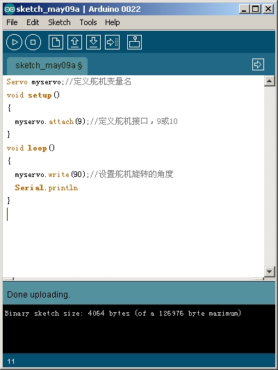 5、detach()——使舵機與其接口分離,該接口(9或10)可繼續被用作PWM接口。
