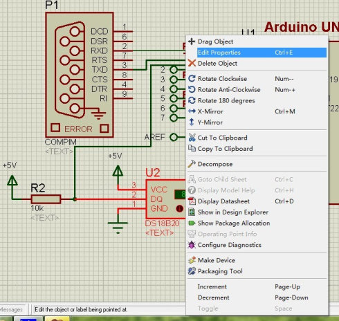 雙擊DS18B20、右擊選擇編輯參數(shù)屬性(第二項)如圖4所示、或者左擊選中DS18B20然后按下ctrl+E,會彈出如圖5所示的DS18B20設(shè)置框。設(shè)置框里有內(nèi)部序列號【注】、當(dāng)前溫度值、調(diào)節(jié)的最小變化量。