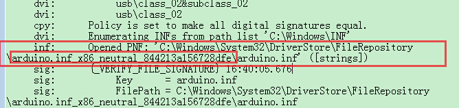 如果仍然安裝失敗,再打開C:\Windows\inf\setupapi.dev.log日志文件,里面記錄了PC硬件安裝運行的情況。因為arduino驅動是剛剛安裝的,所以到該日志文件的末尾去找安裝信息。