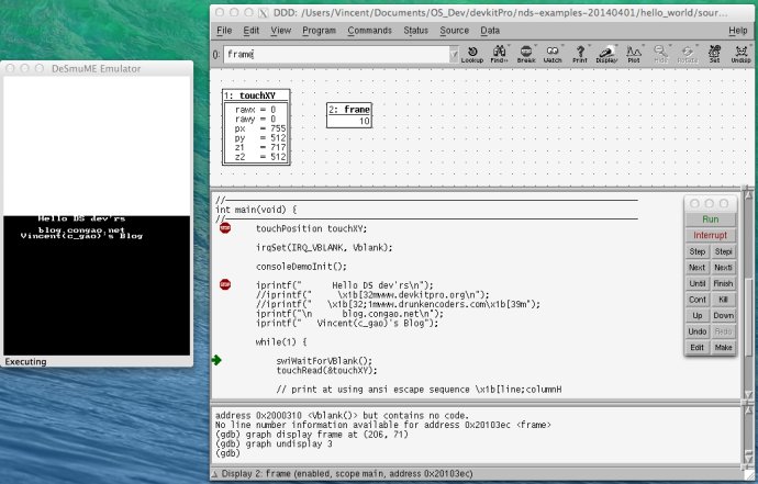 (4)使用DeSmuME模擬器 + GDB + DDD。這是我用過最習(xí)慣的最舒服的環(huán)境,而且支持Linux, Mac OS X系統(tǒng)。