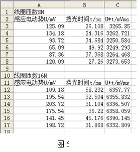 記錄完后,將表格中的數(shù)據(jù)復制,并粘貼到Excel表格中,利用Excel來進行數(shù)據(jù)處理,圖6為某此實驗數(shù)據(jù)。