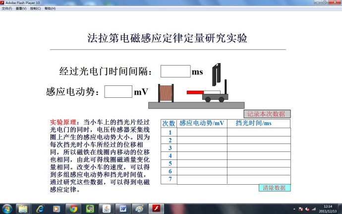 軟件部分利用Adobe Flash來開發(fā),最后生成swf動畫課件。因為具體代碼較多,這里不再列出。圖為課件界面。