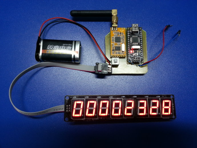 上圖是發令端和計時端的電路。其實還有問題,就是用9V的電池來驅動會出現無法無線發射,只能用arduino nano連著電源來供電,那9V電池接口也是白做了,不過我在網上剛淘了兩塊9V的鋰電,不知道行不行。