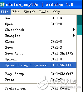 最后打開“File”,你可以看到”Upload using Programmer“,點擊后程序就開始下載了。