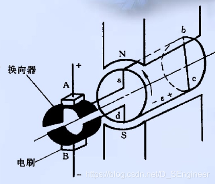 上面這張圖應該都見過吧(因為你現在就在看著它呢,手動滑稽)。小時候四驅賽車的那種黃色小馬達也都見過吧,是不是只要將電壓加載電刷的兩極上,電機就會轉了。那個電機的內部結構就是上圖這樣。這一種里面帶有電刷的電機叫有刷電機,又因為是用的直流電,所以叫直流有刷電機。