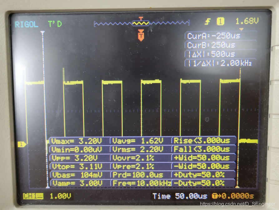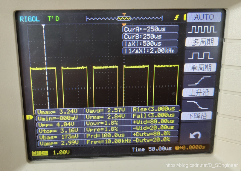 示波器測量1.當占空比為50%時