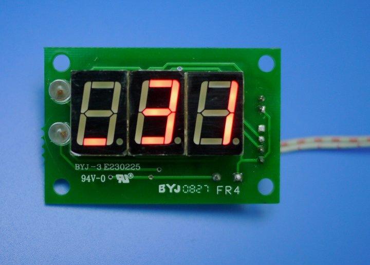 發(fā)個顯示模塊的底面圖,就可以看到利用一片 74HC595 解調(diào) OneWire 通訊,并驅(qū)動三位數(shù)碼管的情況。