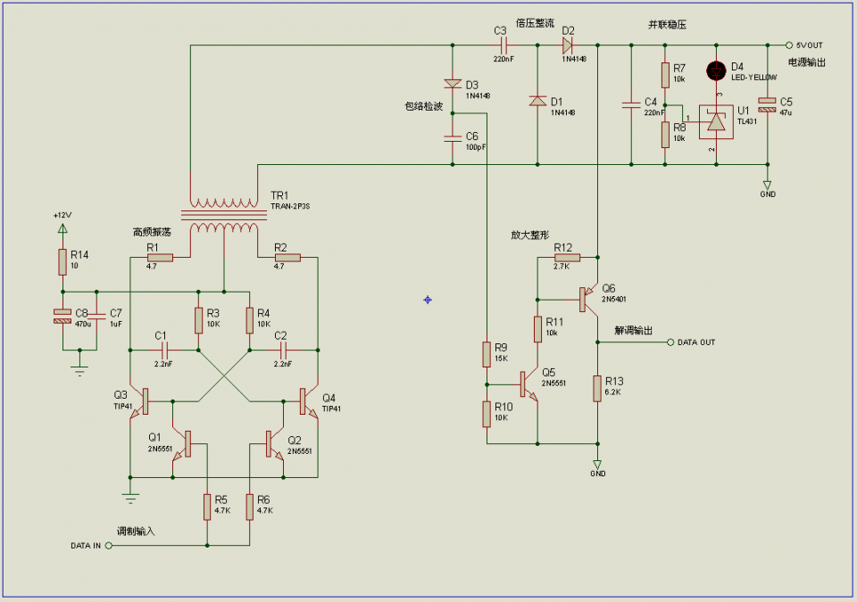 這個一個簡單的高頻振蕩器,頻率約3MHz,mega16的輸出端對其進行ASK調(diào)制。