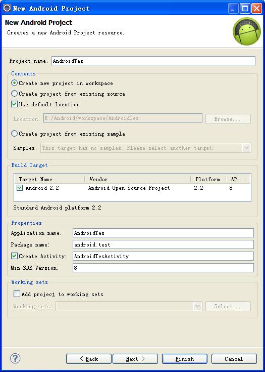 右鍵項目->Run as -> Run Configuration 進入Run Configuretions界面,在Target勾選Android2.2 這個AVD (選擇一個前面建立的虛擬機器。。。)