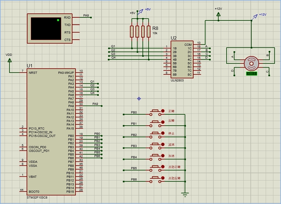 本設計以STM32F103C8T6單片機為核心,通過達林頓晶體管陣列ULN2803驅動一個步進電動機MOTOR-STEPPER,主要應用了定時器、EXTI外部中斷和串口通訊等。結合電機在實際中的工作 ...