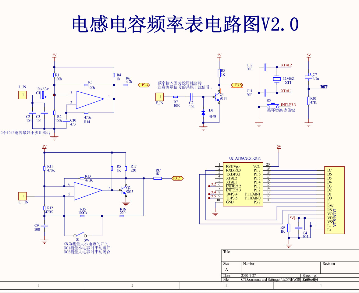 電容電感頻率表LCF用AT89C2051的,頻率低端很不準,不能歸零,但誤差能接受 頻率低端很不準,而且正弦波有的也測不出。怎么改進電路。 L電感測量量程:10uh-20h,調試好偏差5%左右。 C電 ...