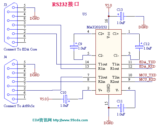 max232是一種把電腦的串行口rs232信號電平(-10 ,+10v)轉換為單片機所用到的TTL信號點平(0 ,+5)的芯片,這個芯片的價格比較貴大約要6元,下面我來介紹一下max232引腳圖以及max232和電腦串口的連接電路,RS232引腳定義。看下面的圖。