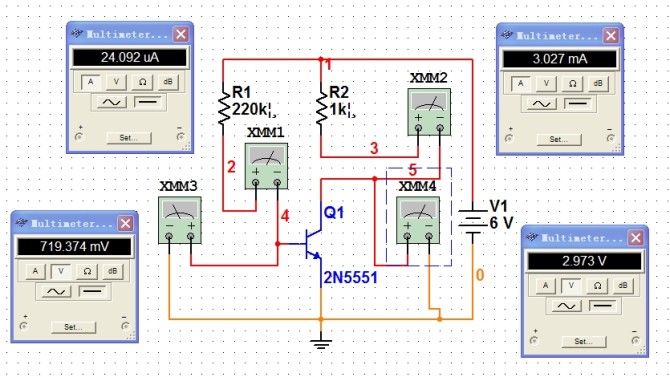 基極電流IBQ=(VCC-VBE)/R1=(6-0.7)/220K=0.024mA.