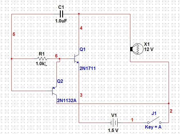 當(dāng)開關(guān)按下,電流從X1-->C1--->R1--->Q1基極--->Q1--->發(fā)射極---->負(fù) 這個(gè)路徑向電容充電,由于電容一開始電壓不能突變,電容開始瞬間左邊直接等于電壓電壓1.5V 相當(dāng)于短路. Q2基極此時(shí)為高電平截止,隨著電容充電電流的減少,C1左邊電壓變成負(fù)電,Q1截止,此時(shí)電容開始放電,放電回路分2路:第一:C1---->X1----->Q2集電極------>Q2基極。第二:C1----->X1------>Q2集電極------>Q2發(fā)射極------>Q1基極------->Q1發(fā)射極------>負(fù).一旦放電完畢,Q1又開始導(dǎo)通,就出現(xiàn)發(fā)聲現(xiàn)象.
