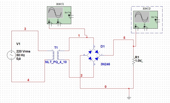 軟件模擬波形:下圖是一個簡單的橋式整流電路