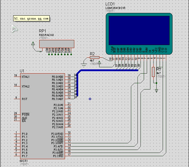 該設(shè)計(jì)顯示效果為:12864上半屏顯示靜態(tài)漢字(* * *相信你會(huì)成功的!),下半屏顯示動(dòng)畫效果(錘子砸釘子,錘子落下釘子釘入的循環(huán)效果),完整的程序源代碼從這里下載 http://m.raoushi.com/f/12864dh.rar ,注意這種是使用的不帶字庫(kù)的屏幕.電路按上面的圖,程序已經(jīng)測(cè)試成功。