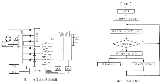 引言:眾所周知,許多科學(xué)實(shí)驗(yàn)都離不開電,并且在這些實(shí)驗(yàn)中經(jīng)常會(huì)對(duì)通電時(shí)間、電壓高低、電流大小以及動(dòng)態(tài)指標(biāo)有著特殊的要求,因此,如果實(shí)驗(yàn)電源不僅具有良好的輸出質(zhì)量而且還具有多功能以及一定的智能化,那么就省去了許多不精確的人為操作,取而代之的是精確的微機(jī)控制,而我們所要做的就是在實(shí)驗(yàn)開始前對(duì)一些參數(shù)進(jìn)行預(yù)設(shè)。這將會(huì)給各個(gè)領(lǐng)域中的實(shí)驗(yàn)研究帶來(lái)不同程度的便捷與高效。因此,直流電源今后的發(fā)展目標(biāo)之一就是不僅要在性能上做到效率高、噪聲低、高次諧波低、既節(jié)能又不干擾環(huán)境,還要在功能上力求實(shí)現(xiàn)數(shù)控化、多功能化與智能化。本文所介紹的就是一個(gè)將開關(guān)電源和線性電源有機(jī)地結(jié)合起來(lái),兼具二者優(yōu)點(diǎn)的高性能單片機(jī)穩(wěn)壓電路設(shè)計(jì)。由于在該電源中引入了單片機(jī)控制,故該電源還具有一定的智能化,可實(shí)現(xiàn)定時(shí)開、關(guān)機(jī),定時(shí)變壓,顯示輸出電壓、電流,預(yù)置輸出電壓值等功能。