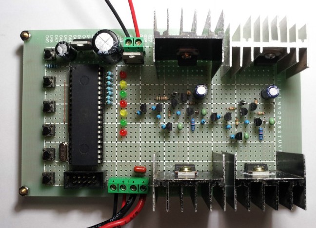 目前,這個版本的調速控制器,共4路PWM脈沖輸出,分別提供給:上,下MOS管驅動電路正轉信號。上,下MOS管驅動電路反轉信號。待機狀態下一個紅色的LED燈閃爍,電機運行的各種狀態指示,可以低速,中速,高速三個檔運行。并可以實現剎車和倒車功能。這個目前可以達到至少100W不成問題。我現在采用的是一個12V 80W的直流有刷電機。低速運行時的電壓為:3.7V,中速時:6.5V,高速時:10.5V。目前這個東東只是實現了最基本的控制功能。還不具有其它功能,如,電機過流保護,欠壓保護(用蓄電池做電源時,可以用得到此功能,保護蓄電池不會過放電)等等功能。這些功能,在以后的時間里慢慢研究,實現吧。呵呵。不多說了,看看照片吧。程序源代碼從這里下載:http://m.raoushi.com/mcu/1063.html 希望大家不吝指教.