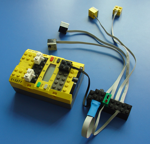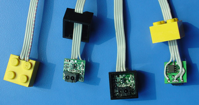 因為RCX輸入口的電源負載能力有限,為避免不可靠,軌跡傳感器自供電,一方面減少了不確定因素,另一方面可以使用RCX的通用輸入模式,增加輸入的分辨率,RCX的通用輸入數值范圍為 0 - 1024 (10位AD)。