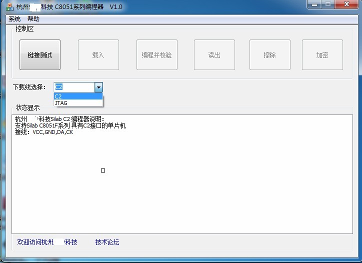 后來公司一個程序猿高手(鄙人也灰常佩服),把C2的協議和那份開源的JTAG協議加進去,全放到C8051F326里面去,然后做了一個上位機,就這樣,C8051F 下載器,下載軟件一整套工具都有了。