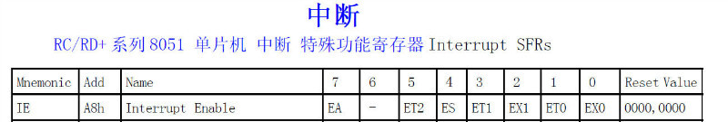 ET0 :定時器0溢出中斷 1開啟 0關閉