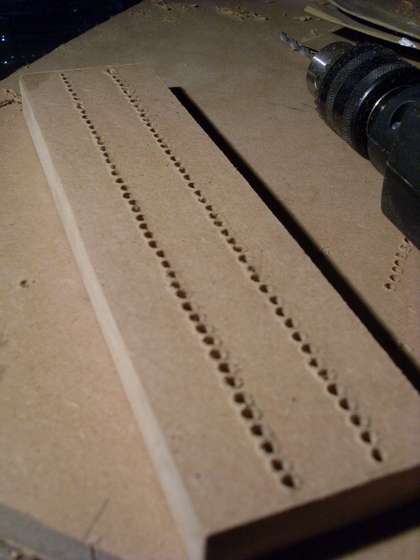 接下來就是在有限的空間里安裝這些led了,我當時只有96個led可用,找了一個MDF板來打出對應的孔。