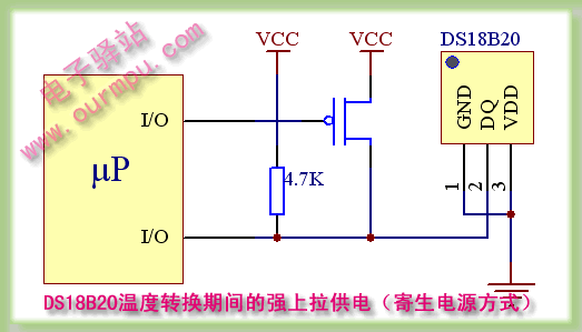 [2]、DS18B20寄生電源強上拉供電方式電路圖
