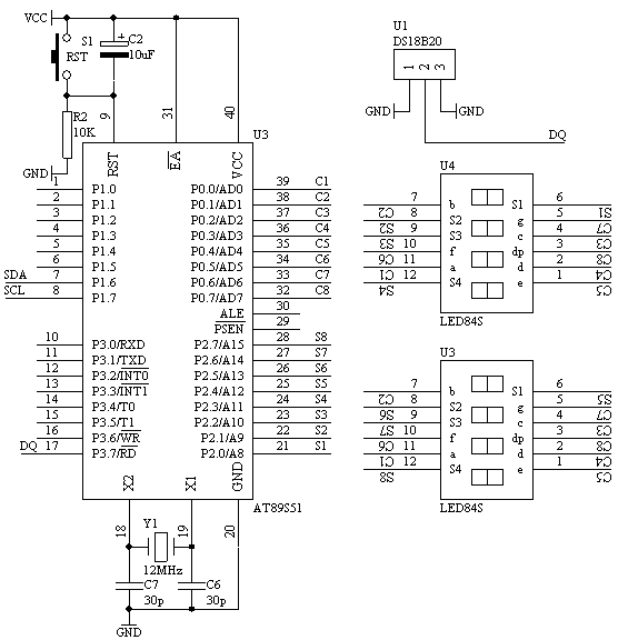 用一片DS18B20構成測溫系統,測量的溫度精度達到0.1度,測量的溫度的范圍在-20度到+100度之間,用8位數碼管顯示出來。