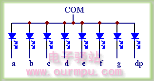 數碼管按各發光二極管電極的連接方式分為共陽數碼管和共陰數碼管兩種。