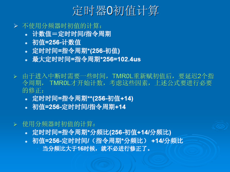 沒有分頻比定時器的初值計算公式:T0=256-Tc+2