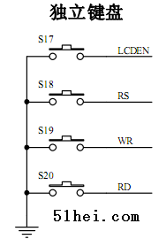 非編碼鍵盤分:獨立式非編碼鍵盤(獨立按鍵)、行列式非編碼鍵盤(4*4陣列鍵盤)