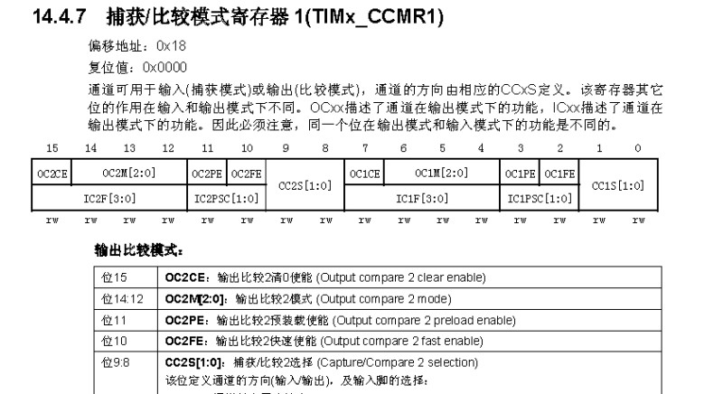 CC2通道配置為輸出: 0: 關閉- OC1禁止輸出。 1: 開啟- OC2信號輸出到對應的輸出引腳。