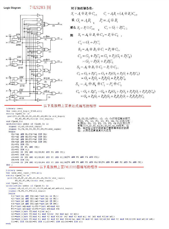 由于串行多位加法器的高位相加時要等待低位的進位,所以速度受到進位信號的限制而變慢,人們又設計了一種多位數超前進位加法器邏輯電路,使每位求和結果直接接受加數和被加數而不必等待地位進位,而與低位的進位信號無關,這就大大的提高了運算速度。現在簡單介紹超前進位的運算方法,以及VHDL可編程邏輯編程。