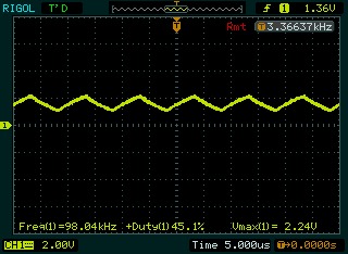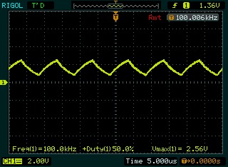 這是50K的樣子,已經看不出原來波形的樣子了,直接變成了很短的三角波了。看來這小小的電阻還是真厲害啊。
