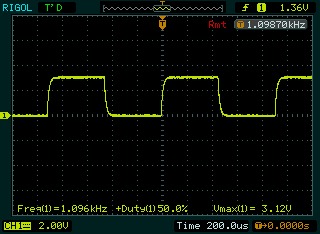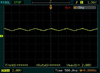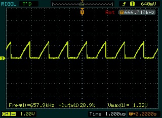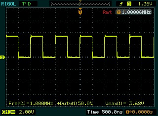 在開漏模式下,試了一下10K上拉電阻,650K左右的頻率,樣子也蠻奇怪的,呵呵
