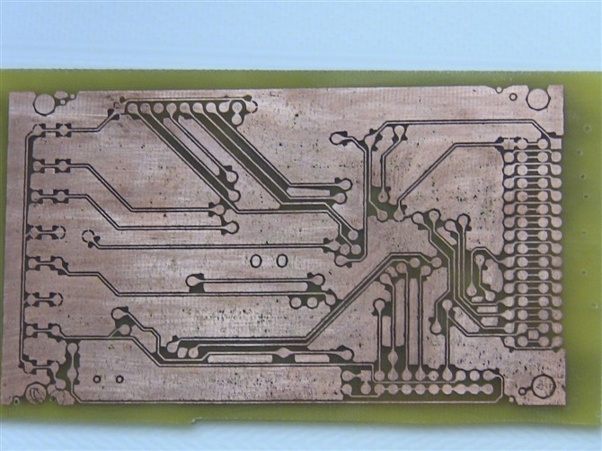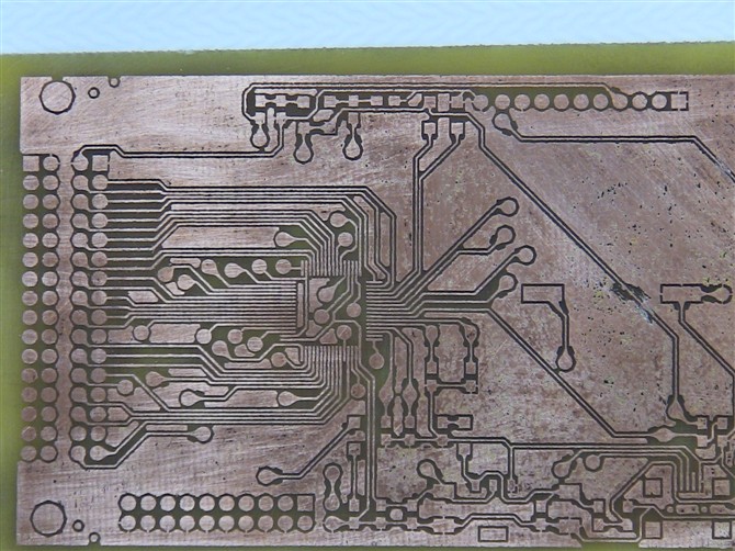 看沒啥問題就可以進行腐蝕了。腐蝕好以后測試通斷,測試后再補線。