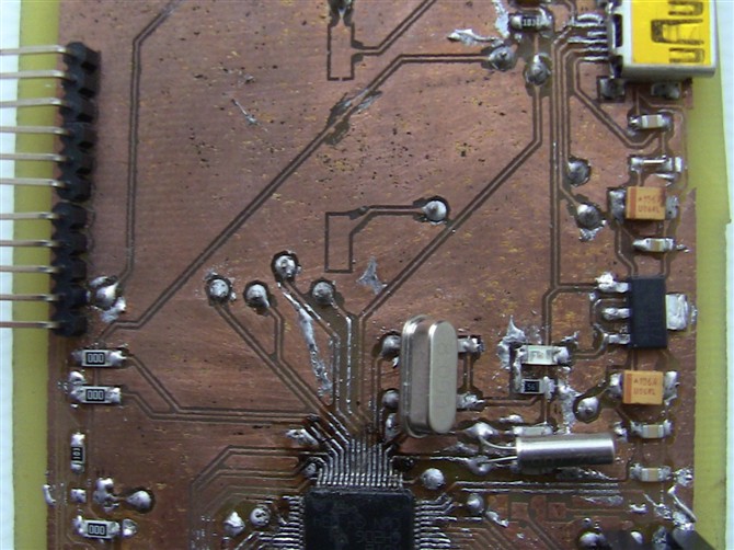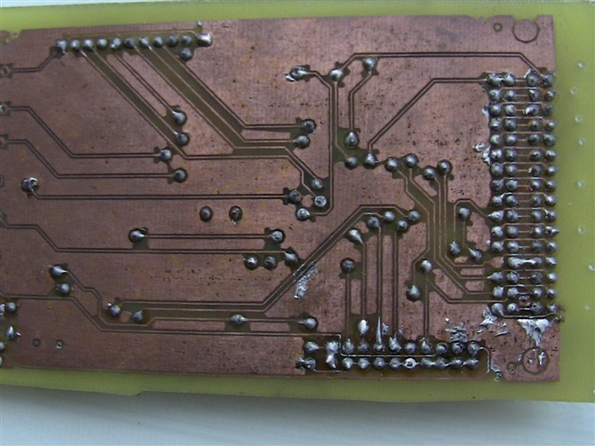 焊盤和過孔都要弄,確實比較麻煩。還有一點,焊過孔時,一定要注意芯片下面的過孔,一定要低,哪怕是先焊完再用砂紙打磨。否則的話,芯片會被撬起。就沒法焊芯片了,所以一定要打磨平和焊盤一樣平。