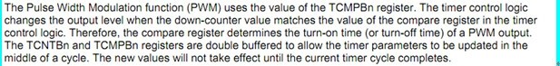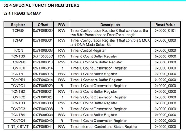 我說怎么在上面的第一步中突然冒出個TCNTn和TCMPn,我以為是數據手冊錯了,因為在PWM提供的16個寄存器中沒有這兩個寄存器。 那么請看下面: