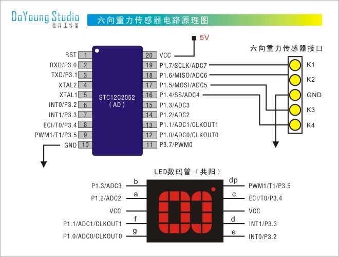 接口說明: 一位數(shù)碼管(用于顯示),傳感器接口