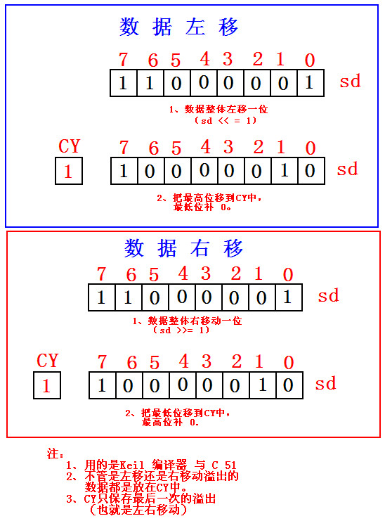 /*i <<= 1; //注:在Keil編譯器中不管是左移還是右移,移出的數據都是放在CY中