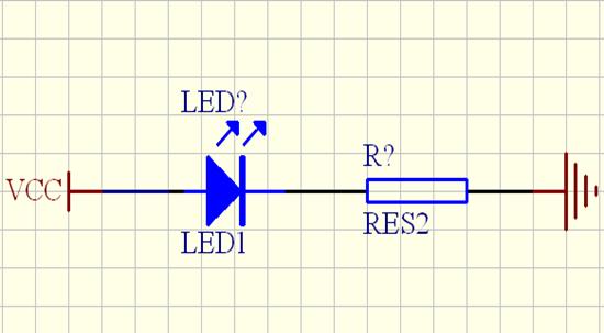 學過電子技術的人應該知道,要讓一個發光二極管發光我們可能采用如下電路實現,如圖2,這里只要限流電阻選擇恰當,就可以讓發光二極管發光。