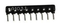 所謂排阻,其實就是一排若干個參數完全相同的電阻,主要有有直插和貼片兩種形式,如圖5所示。它們的一個引腳都連到一起,作為公共引腳,其余引腳正常引出,通常最左邊的那個是公共引腳,它在排阻上一般用一個色點標出來。如圖4所示,8個發光二極管陰極接單片機P1口的8個引腳,陽極分別接8個電阻的一端,然后電阻的另一端全部接在一起由1腳引出,然后通過跳線帽直接接電源的正極5V。采用排阻直接代替8個電阻,這樣不僅可以縮小電路板尺寸,而且也提高的焊點的可靠性。