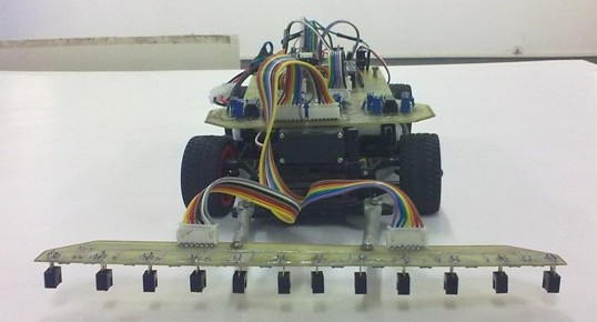 無論是一體式還是分離式,其檢測原理都相同,由于黑色吸光,當紅外發射管照射在黑色物體上時反射回來的光就較少,接收管接收到的紅外光就較少,表現為電阻大,通過外接電路就可以讀出檢測的狀態;同理,當照射在白色表面時發射的紅外線就比較多,表現為接收管的電阻較小,此時通過外接電路就可以讀出另外一種狀態,如用電平的高低來描述上面兩種現象就會出現高低電平之分,也就是會出現所謂的0和1兩種狀態,此時再將此送到單片機的I/O口,單片機就可以判斷是黑白路面,進而完成相應的功能,如循跡、避障等。