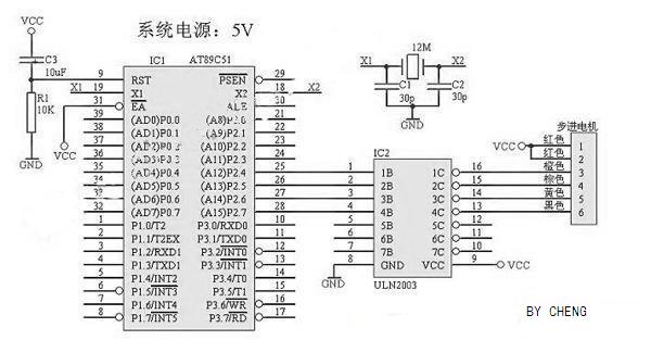 ULN2003的驅動直接用單片機系統(tǒng)的5V電壓,可能力矩不是很大,大家可自行加大驅動電壓到12V。