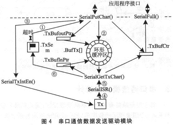 uCOS-II內核提供了信號量作為通信和同步的機制,引入數據接收信號量、數據發送信號量分別對緩沖區兩端的操作進行同步。串口的操作模式如下:用戶任務想寫,但緩沖區滿時,在信號量上睡眠,讓CPU運行別的任務,待ISR從緩沖區讀走數據后喚醒此睡眠的任務;同樣,用戶任務想讀,但緩沖區空時,也可以在信號量上睡眠,待外部設備有數據來了再喚醒。由于uCOS-II的信號量提供了超時等待機制,串口當然也具有超時讀寫能力。
