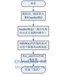 從上面的分析可以知道這種中斷處理的方式,并不是中斷處理中的簡(jiǎn)單跳轉(zhuǎn)方式(因?yàn)樘D(zhuǎn)范圍的局限性)而是采用更新PC值的形式實(shí)現(xiàn)的。