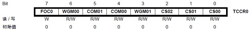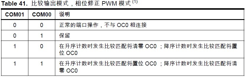 TCCR0|=(1<<WGM00)|(1<<COM01)|(1<<CS00);//相位修正PWM