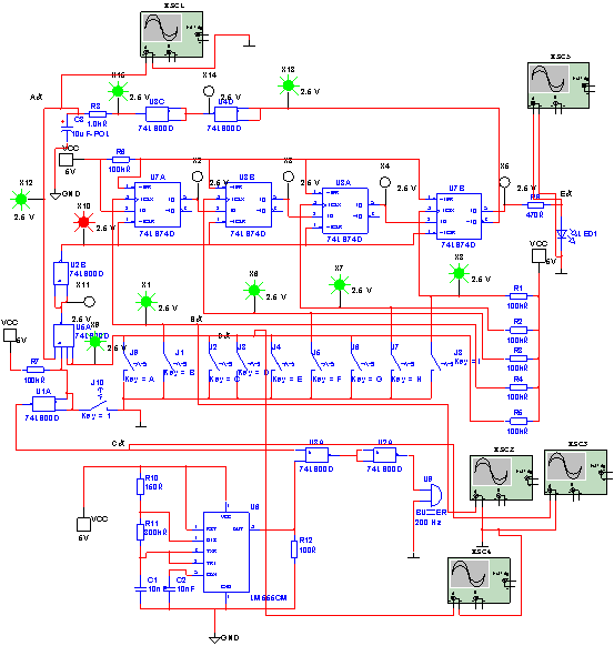 1、本電路按要求輸入正確編碼(BFHI)后能夠解鎖。