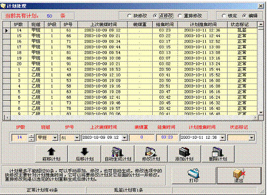 生產計劃編排功能“見圖2-2”,可以手工編排和隨時修改推焦計劃。
