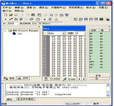 用MEDWIN匯編,是為產(chǎn)生機(jī)器碼,在程序的編寫中,可能會(huì)出現(xiàn)語法錯(cuò)誤和警告。點(diǎn)擊項(xiàng)目管理→產(chǎn)生代碼,將提示你程序代碼的錯(cuò)誤,當(dāng)你改正一處錯(cuò)誤后,你可以再點(diǎn)擊項(xiàng)目管理→重新產(chǎn)生全部代碼,將提示你程序代碼的錯(cuò)誤,當(dāng)你把所有的錯(cuò)誤都改正后,才能進(jìn)行調(diào)試。點(diǎn)擊調(diào)試→開始調(diào)試,將在程序開始的第一行出現(xiàn)一個(gè)箭頭,按F8將一步一步執(zhí)行程序,點(diǎn)擊查看→數(shù)據(jù)區(qū)Idata,在數(shù)據(jù)區(qū)Idata內(nèi)可以修改地址內(nèi)的值。再點(diǎn)擊查看→數(shù)據(jù)區(qū)Bit查看結(jié)果是否正確。